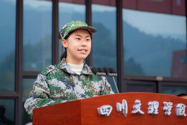 表态发言显担当。教官代表在发言中承诺,将以身作则、科学组训、严格按照军训大纲要求,既保证训练质量,又关爱每一位参训学生,全力配合学校高质量地完成军训任务。参训学生代表、文学与传播学院2025级杨健淇同学表态,将以“不畏艰苦、挑战自我”的精神投入训练,在迷彩方阵中书写青春答卷。