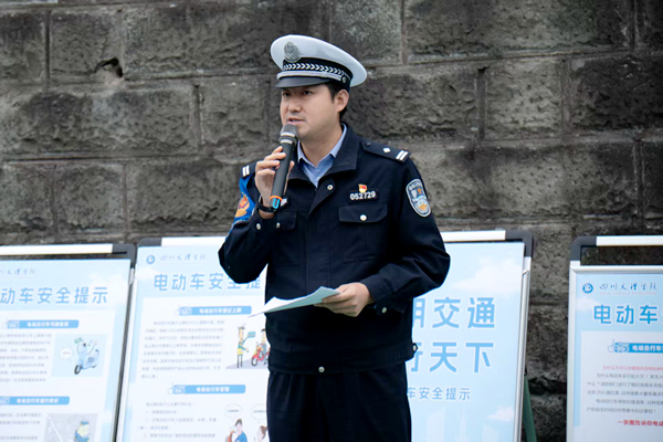 活动始伊,交管支队直属一大队副大队长周中华警官以“文明守法,平安回家”为核心,结合高校学生出行特点展开宣讲。他围绕《道路交通安全法》中关于非机动车登记、通行规则、载人载物限制等内容,重点解读了校园及周边常见的电动车逆行、超速、违规载人、不佩戴安全头盔等违法行为的法律后果,让在场同学深刻感受到交通安全风险,深刻认识到“小陋习”可能引发“大事故”。